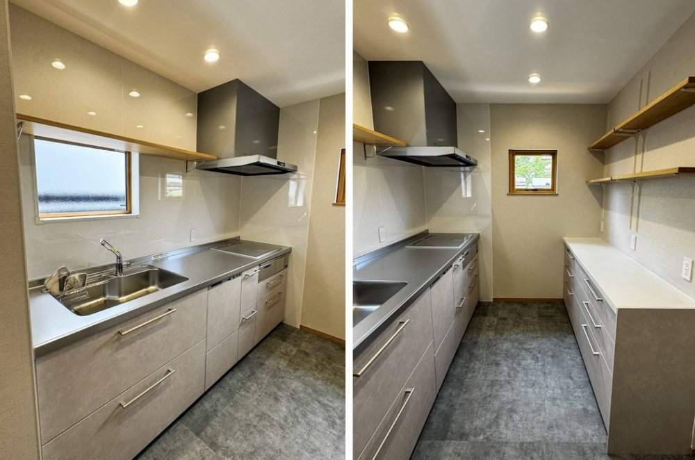 キッチン専用エアコンを設置。火を使う場所なので暑くなりがちなキッチンですが、快適に料理ができます♩