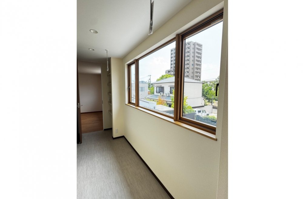 【2階廊下】大開口窓で明るく気持ちのよい廊下に。
