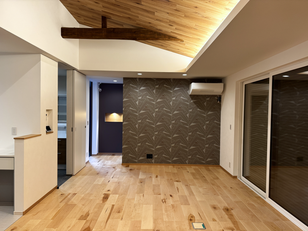 無駄なスペースや壁を取り除き、広々としたLDKのある平屋を実現させました。